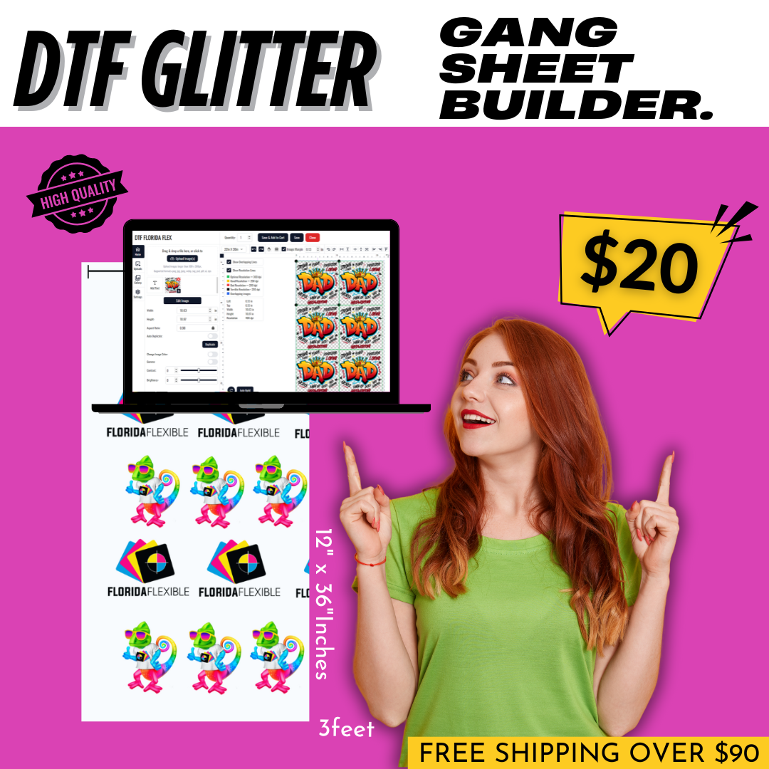 12"x36" DTF Transfer GLITTER - Gang Sheet Builder.